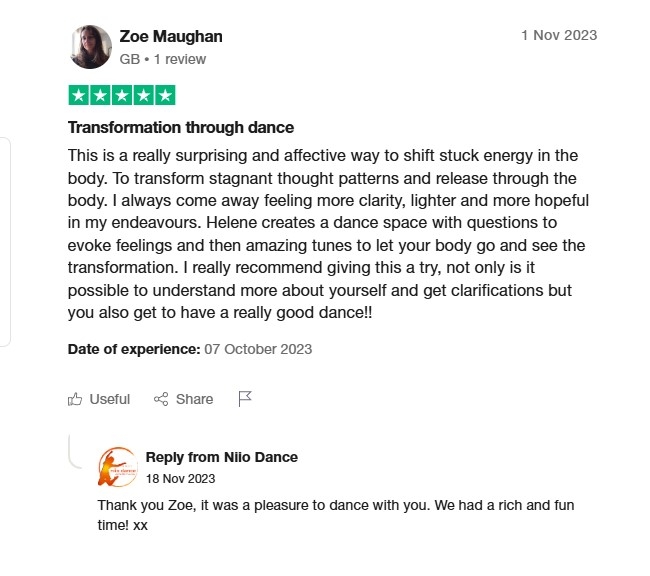 Helene has so much to share and is such a generous and empowering teacher. Her instruction is so natural you can feel it comes from the heart.. Niio Dance ... Shake out your stress and dance your way to freedom '