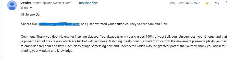 And I really loved the music Helene used, it carries you, takes you into yourself. During the course I feel I've released my body of so much built up stress and emotion.