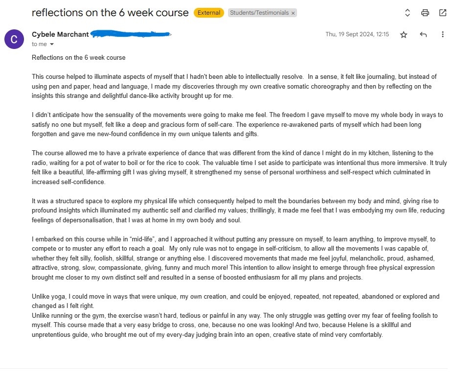 What is different on Helene's course is that she facilitates a journey where I can process emotions in my movement.